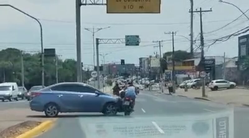 Em certo momento na Avenida Flores da Cunha, no cruzamento do bairro Parque da Matriz o esposo avançou o sinal vermelho e a mulher foi atrás aí deu ruim, um carro de cor azul atingiu violentamente a motocicleta e a esposa foi ao chão.