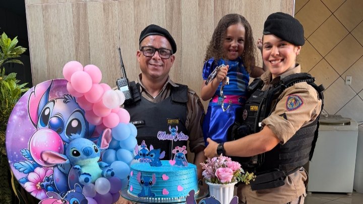 Na presente data, os militares compareceram a uma comemoração de aniversário infantil, atendendo a um convite realizado pela família, tendo em vista que a aniversariante é admiradora da Polícia Militar de Minas Gerais.