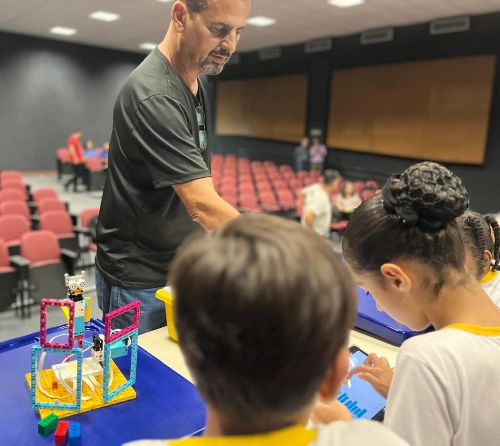 Durante o Robótica Day, os estudantes participaram de atividades que estimulam o aprendizado por meio da experimentação. Desde os anos iniciais, os alunos são incentivados a explorar conceitos como engrenagens, eixos e ângulos em construções coletivas, de forma lúdica. Ao se aproximarem dos 10 anos, passam a ter contato com noções de programação, sensores e motores, ampliando o repertório tecnológico.