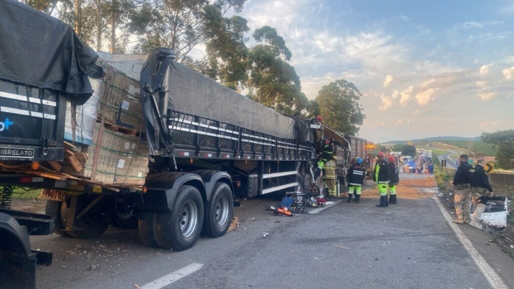 Militares do Pelotão de Três Corações atenderam ocorrência de colisão entre carretas, do tipo bitrem, na Rodovia-381, em Carmo da Cachoeira. As carretas seguiam no mesmo sentido e, conforme relatos colhidos durante o atendimento da ocorrência, a carreta que atrás chocou-se na traseira da carreta que seguia à frente.