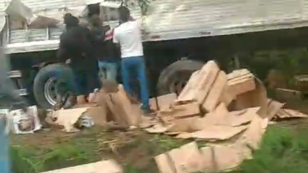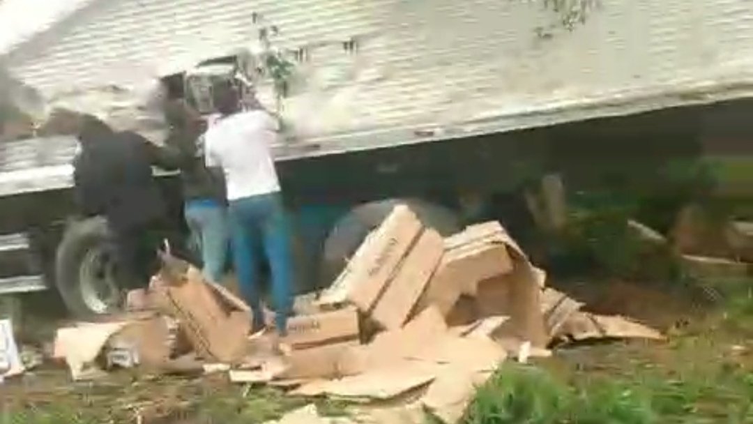 O fato se deu próximo da lanchonete Cascata, sentido João Monlevade e mais uma vez como sempre vemos acontecer, inúmeras pessoas que passam perto promovem saques da carga.