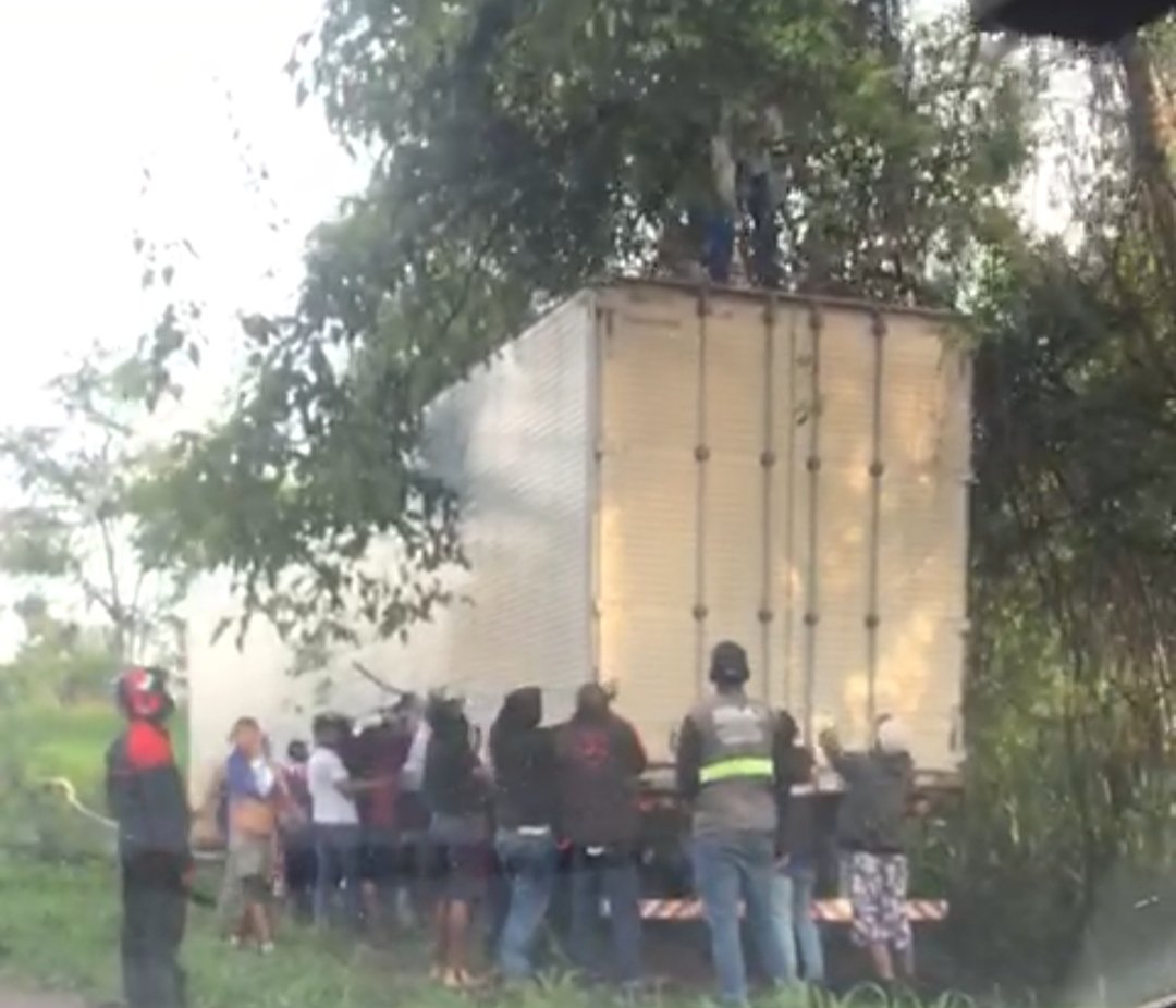 Recebemos a informação que a carreta estava carregada de eletrodomésticos, inclusive eletrodomésticos muito caros como Air-Free, então podem ter certeza que os ladrões já devem estar anunciando Air-Free para venda em redes sociais.