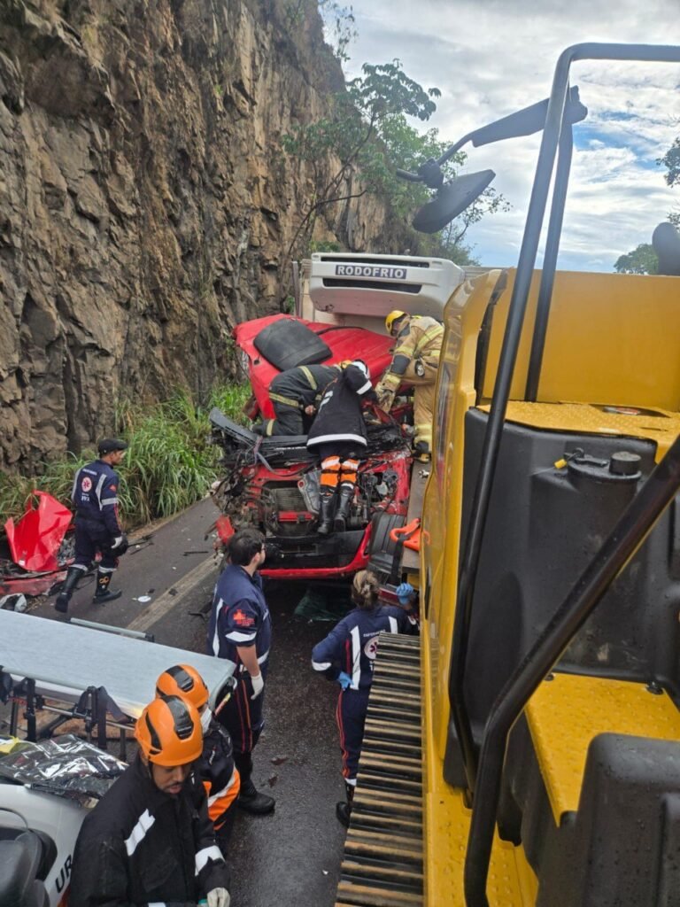 Sabará (Ravena): acidente grave entre caminhão e carreta com vítima presa às ferragens na manhã de hoje