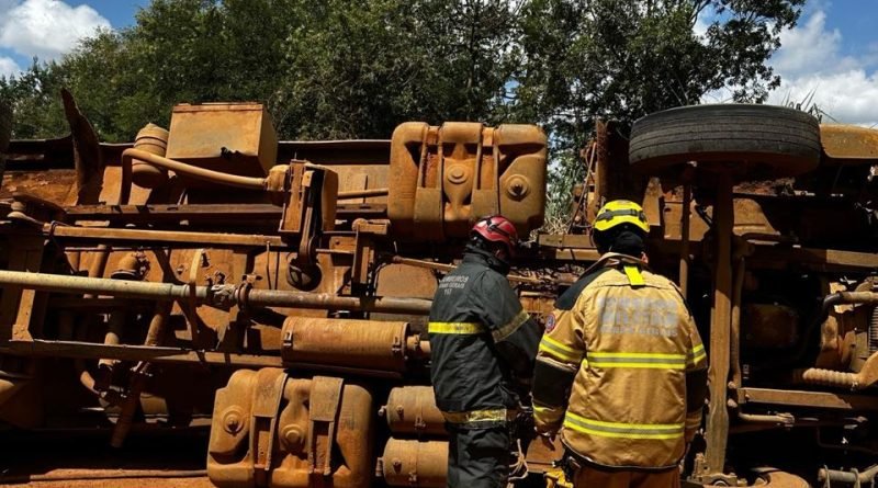 No local, o caminhão estava tombado e o motorista estava preso sob a cabine, já apresentando sinais evidentes de óbito por esmagamento.