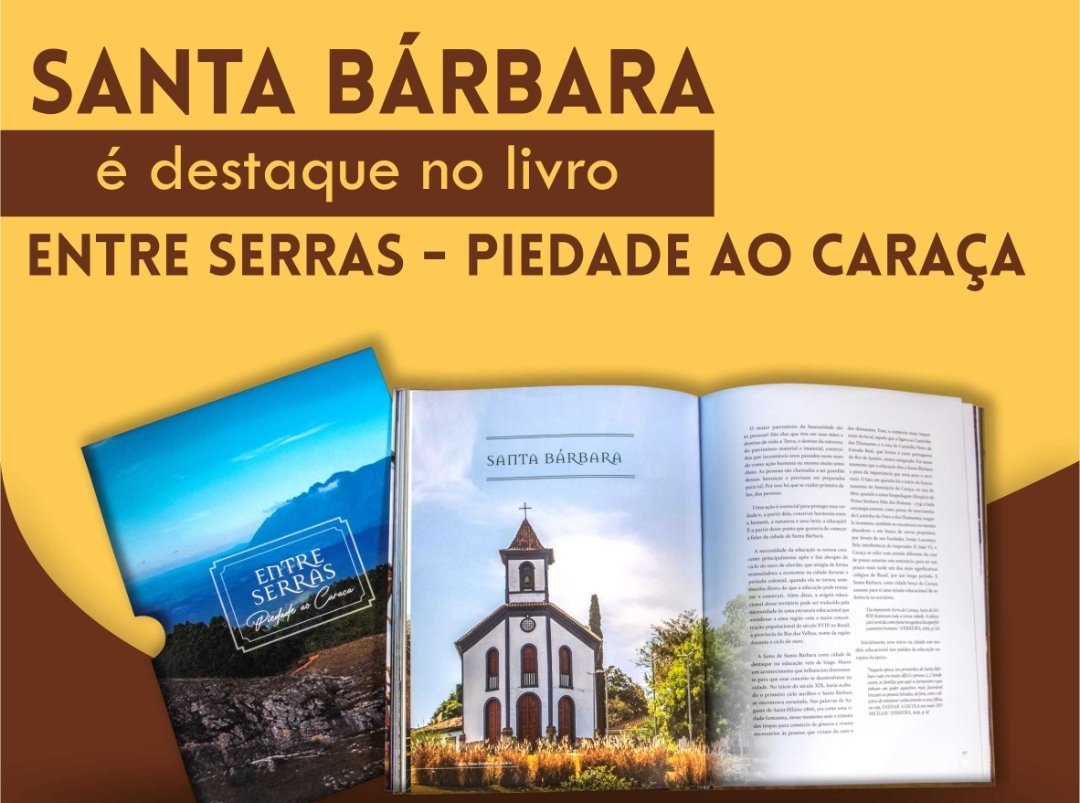 Santa Bárbara. O livro faz uma narrativa simples e de forma sintética através de um conjunto de histórias e informações sobre pessoas, lugares e sabores da região. Na parte que destaca Santa Bárbara, a autora cita alguns patrimônios importantes da nossa história como, por exemplo, a Capela de Nosso Senhor do Bonfim como marco inicial da cidade e em seguida, a Igreja Matriz de Santo Antônio que é cartão postal de grande destaque. O exemplar ainda exibe outros patrimônios do nosso núcleo histórico, o Memorial Affonso Penna, a Igreja Nossa Senhora das Mercês, a Capela da Arquiconfraria do Cordão de São Francisco e as Ruínas do Hospital Velho.