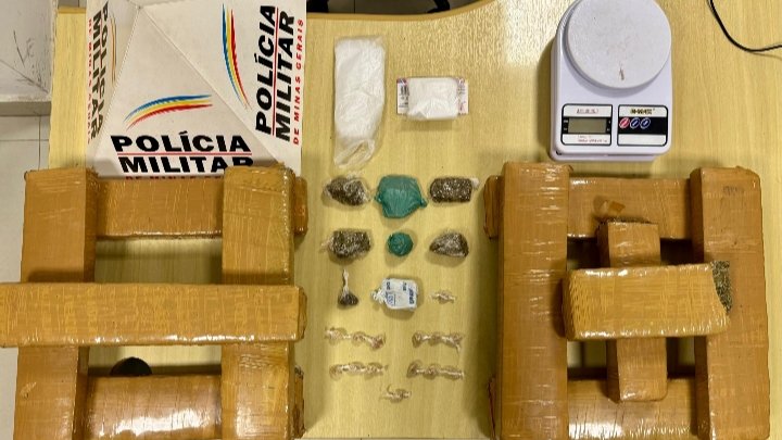 Durante as diligências, informações levaram os militares a uma residência abandonada, onde foram encontrados materiais relacionados ao tráfico de drogas, incluindo diversas barras de substância semelhante à maconha e uma balança de precisão.