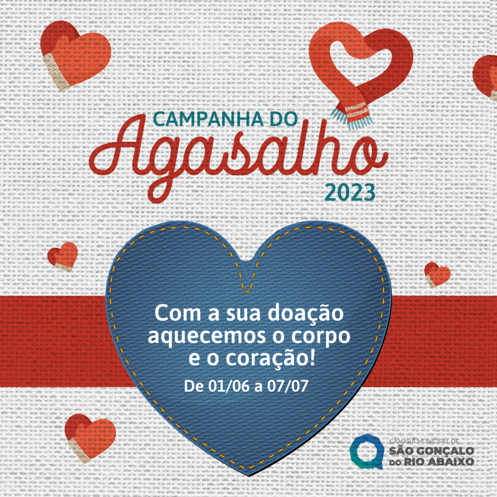 A Campanha do Agasalho é uma ação anual do Legislativo de SGRA, coordenada pela Escola do Legislativo e tem como meta amparar pessoas que não têm condições de se aquecer no inverno. As peças que não forem retiradas serão encaminhadas ao serviço de Assistência Social, da Secretaria de Trabalho e Desenvolvimento Social, que irá distribuir a quem mais precisar.