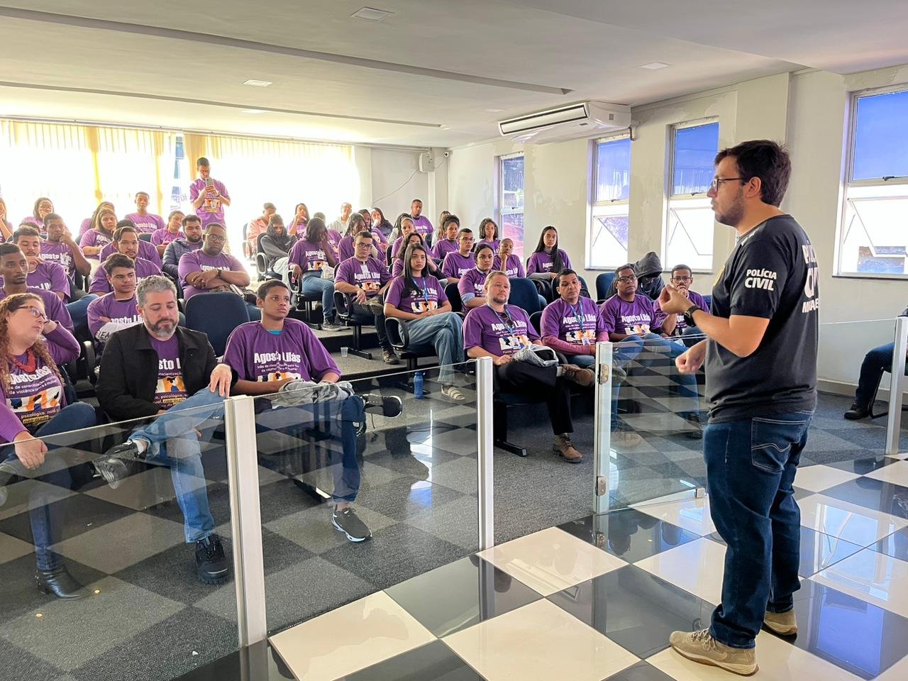 A Prefeitura de São Gonçalo do Rio Abaixo, através da Secretaria de Trabalho e Desenvolvimento Social, por meio do Centro de Referência Especializado em Assistência Social (Creas) realizou palestra alusiva ao Agosto Lilás para estudantes do Senai. O tema foi “Ciclo da violência, medidas protetivas”, com o delegado da delegacia Especializada em Atendimento à Mulher de Itabira, João Martins Teixeira. Entre os assuntos abordados, o delegado orientou sobre como a mulher pode buscar meios de proteção com a delegacia virtual para fazer o Boletim de Ocorrência, nos diversos tipos de violência como ameaças, inclusive pelas redes sociais.