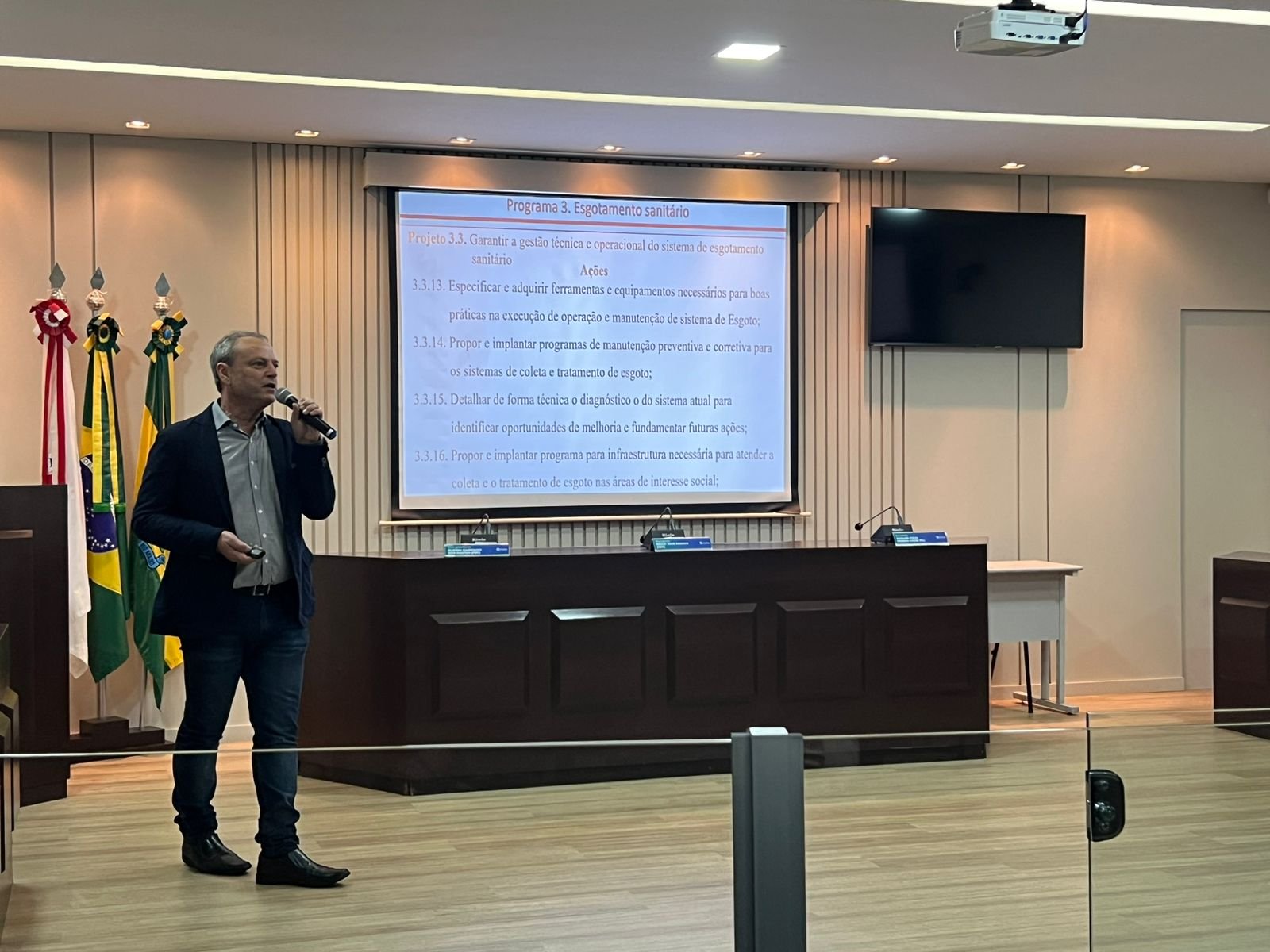 Na ocasião, os engenheiros Wagner José da Silva Melillo e Carlos Henrique de Melo apresentaram diversos pontos do Plano como: O abastecimento de água, esgotamento sanitário, limpeza urbana, manejo de resíduos sólidos, drenagem urbana, entre outros componentes. Após a explanação dos engenheiros, a palavra foi aberta ao público para perguntas.