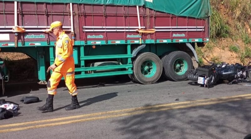 Segundo relato do condutor da carreta, a motocicleta estava ultrapassando quando colidiu lateralmente contra a carreta.