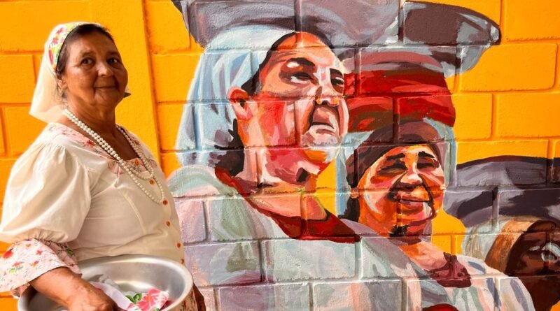 Muro transformado em arte por diversas mãos orientadas por Priscila Amoni.
