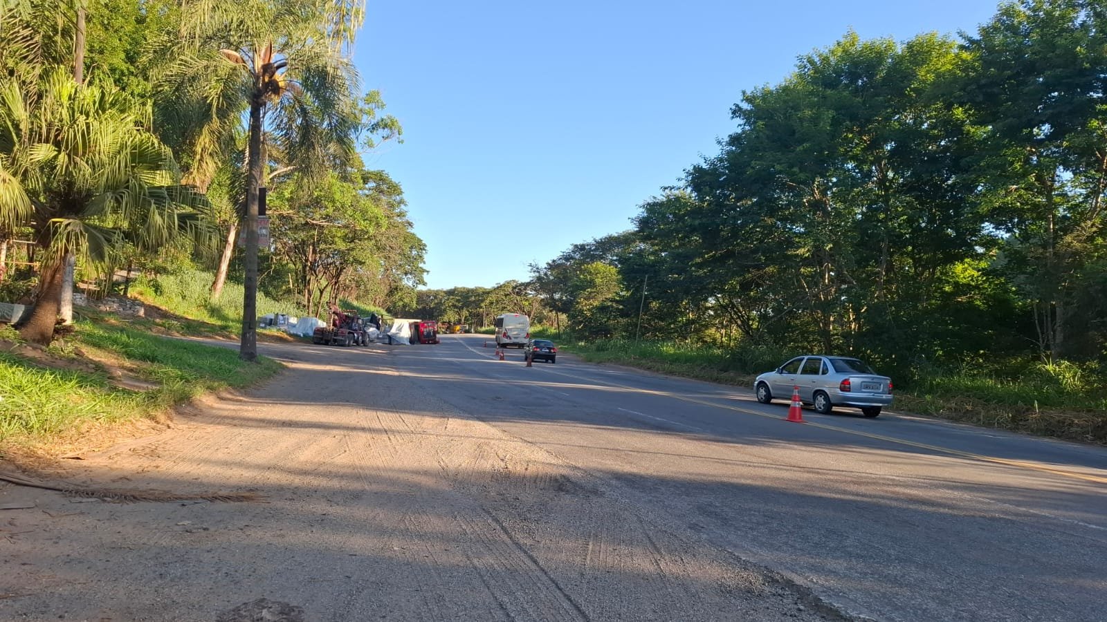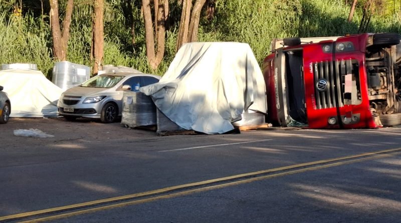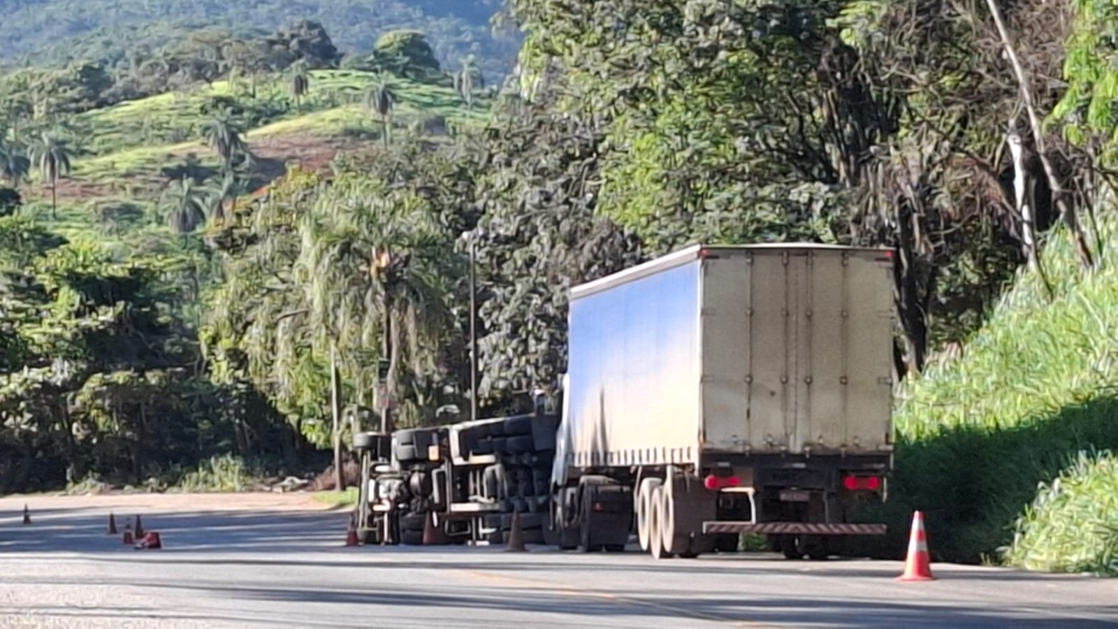 O acidente aconteceu no sentido João Monlevade, o condutor do veículo não teve ferimentos, a carga está sendo baldeada para outra carreta e equipes de socorro já estão no local para fazer o destombando do veículo.