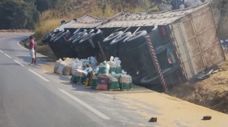 São Gonçalo do Rio Abaixo: Carreta tomba no Corte de Pedras