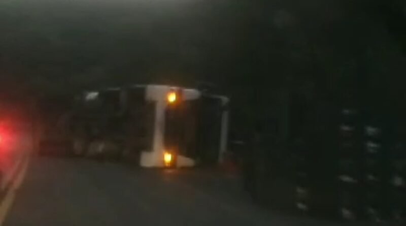 São Gonçalo do Rio Abaixo: Carreta tomba próximo ao Montanha Lanches (assista o vídeo)