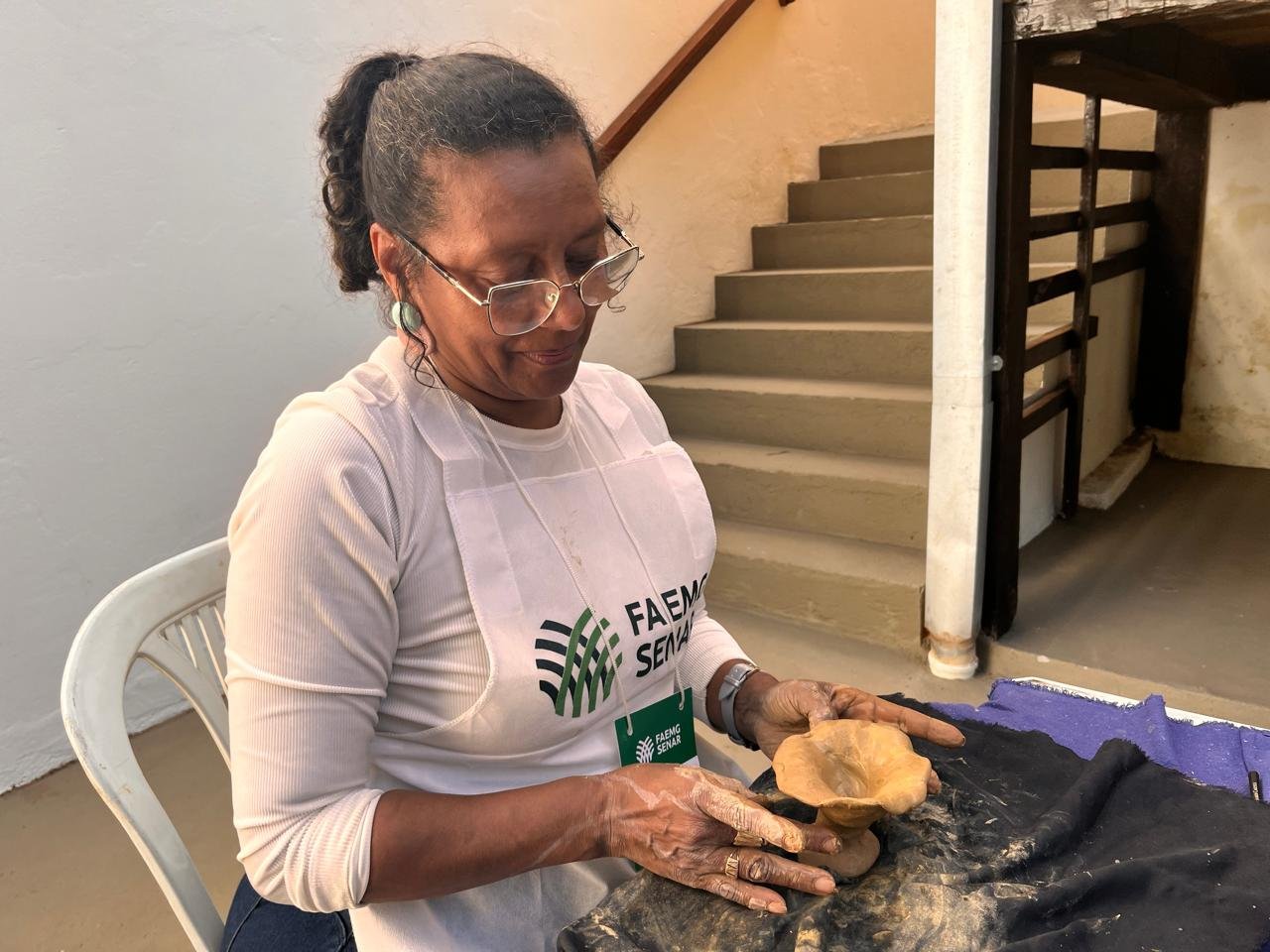 Pratos, jarros, centros de mesa e outros materiais a base de argila foram confeccionados pelas alunas sob orientação da instrutora, Cláudia Silveira, há 29 anos difundindo o artesanato no sistema Faemg. As alunas também terão a experiência de queimar as peças em forno caseiro que será confeccionado pela instrutora na área da Associação de Assistência Social de São Gonçalo (Aasgra).