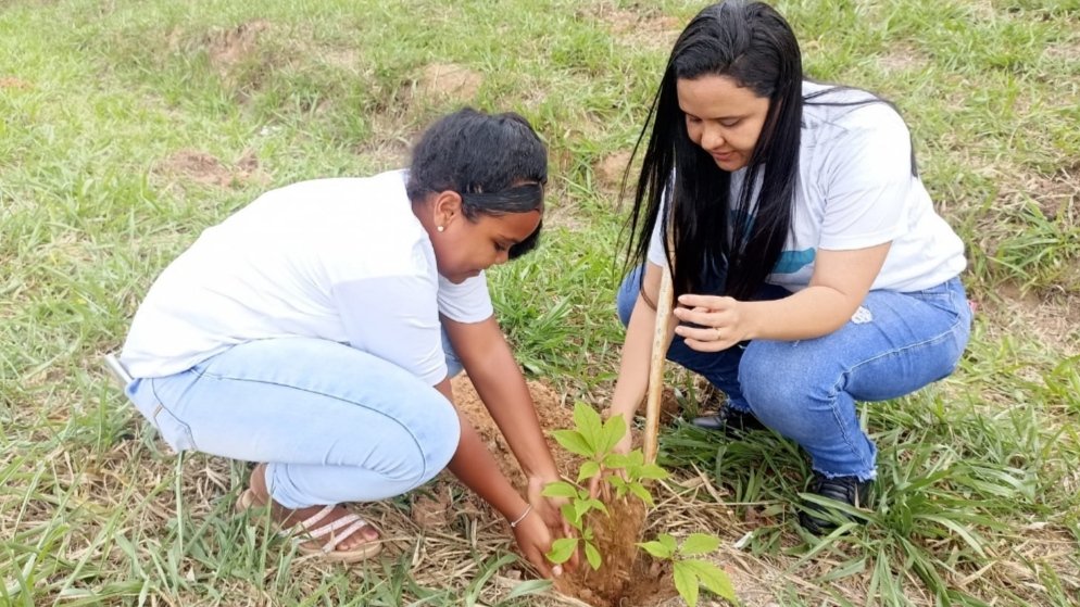 A atividade foi realizada juntamente com os alunos da escola municipal. As mudas foram disponibilizadas pela Vale.