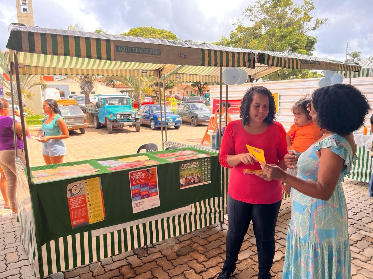 A Feira na Praça, também foi ponto de conscientização de combate à doença. Todos que passaram pelo local receberam material explicativo sobre a prevenção a proliferação do mosquito.