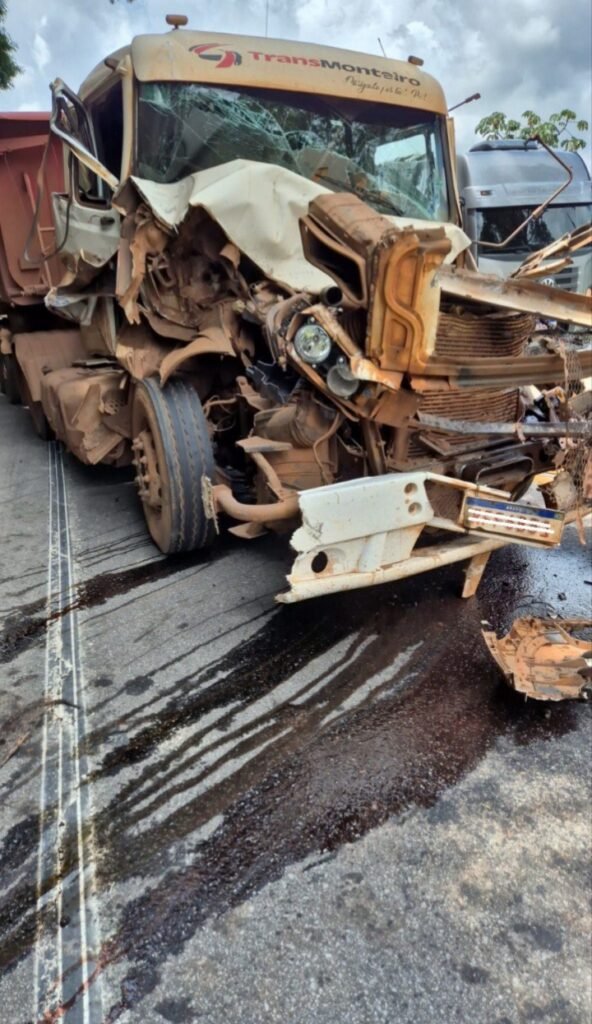 SÃO GONÇALO DO RIO ABAIXO: ENGAVETAMENTO ENTRE TRÊS VEÍCULOS PESADOS MOBILIZA CORPO DE BOMBEIROS NA BR-381, UM HOMEM FICOU FERIDO (ASSISTA O VÍDEO)