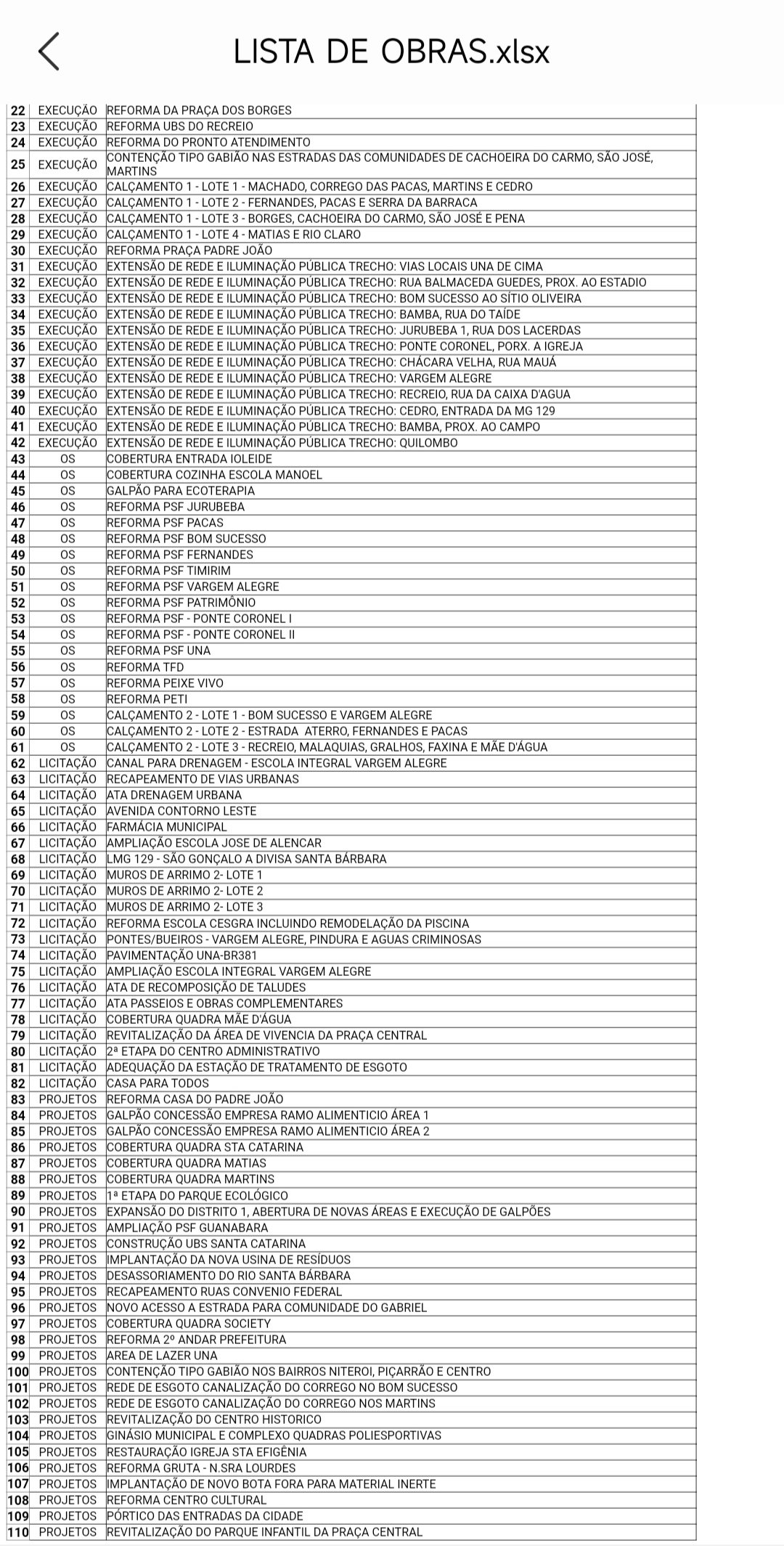 VEJA ALGUMAS DAS OBRAS A SEREM EXECUTADAS, EM EXECUÇÃO E JÁ FINALIZADAS EM 2023 em planilha anexada.