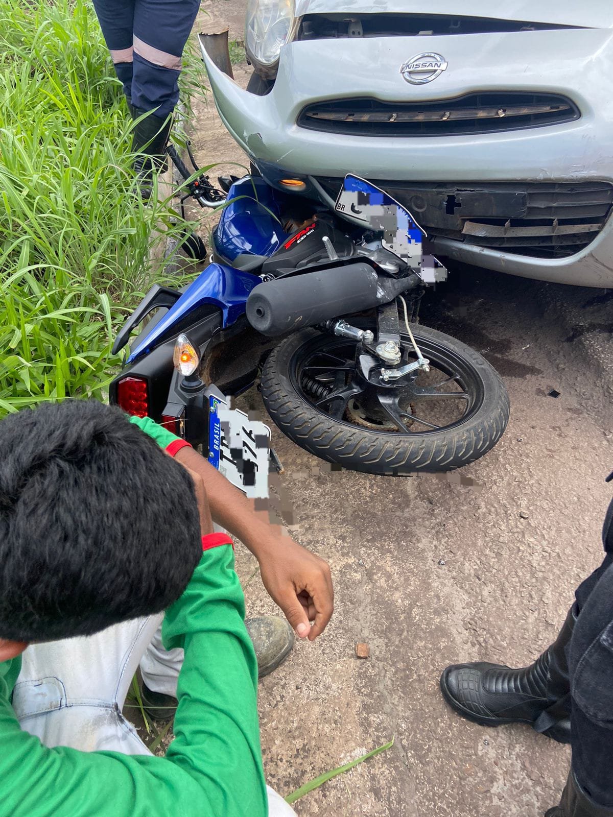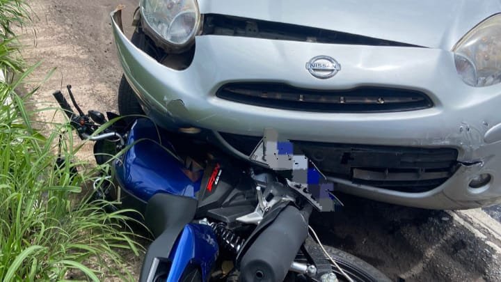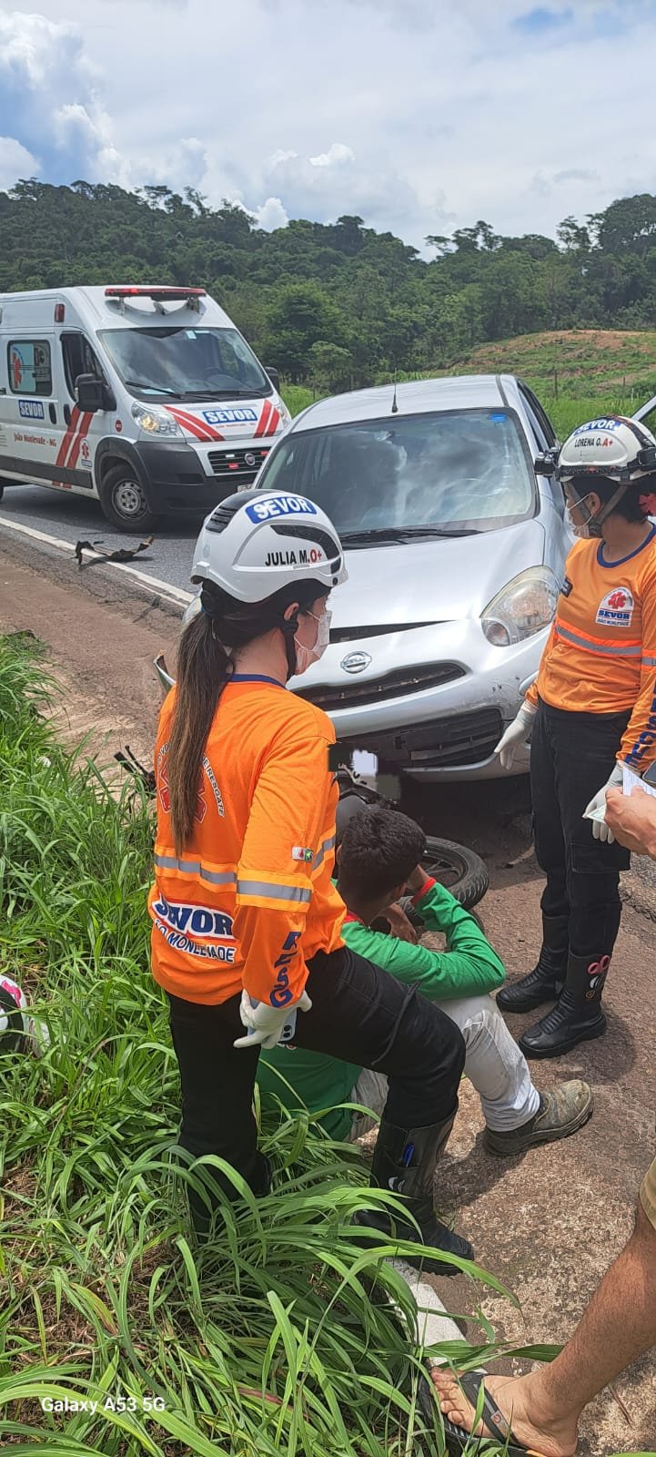 O condutor da motocicleta, identificado como L.G.G.M de 20 anos de idade, foi socorrido pela equipe do SEVOR com várias escoriações pelo corpo.