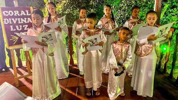 Coral “Divina Luz” composto por crianças da comunidade chamou a atenção pela afinação.