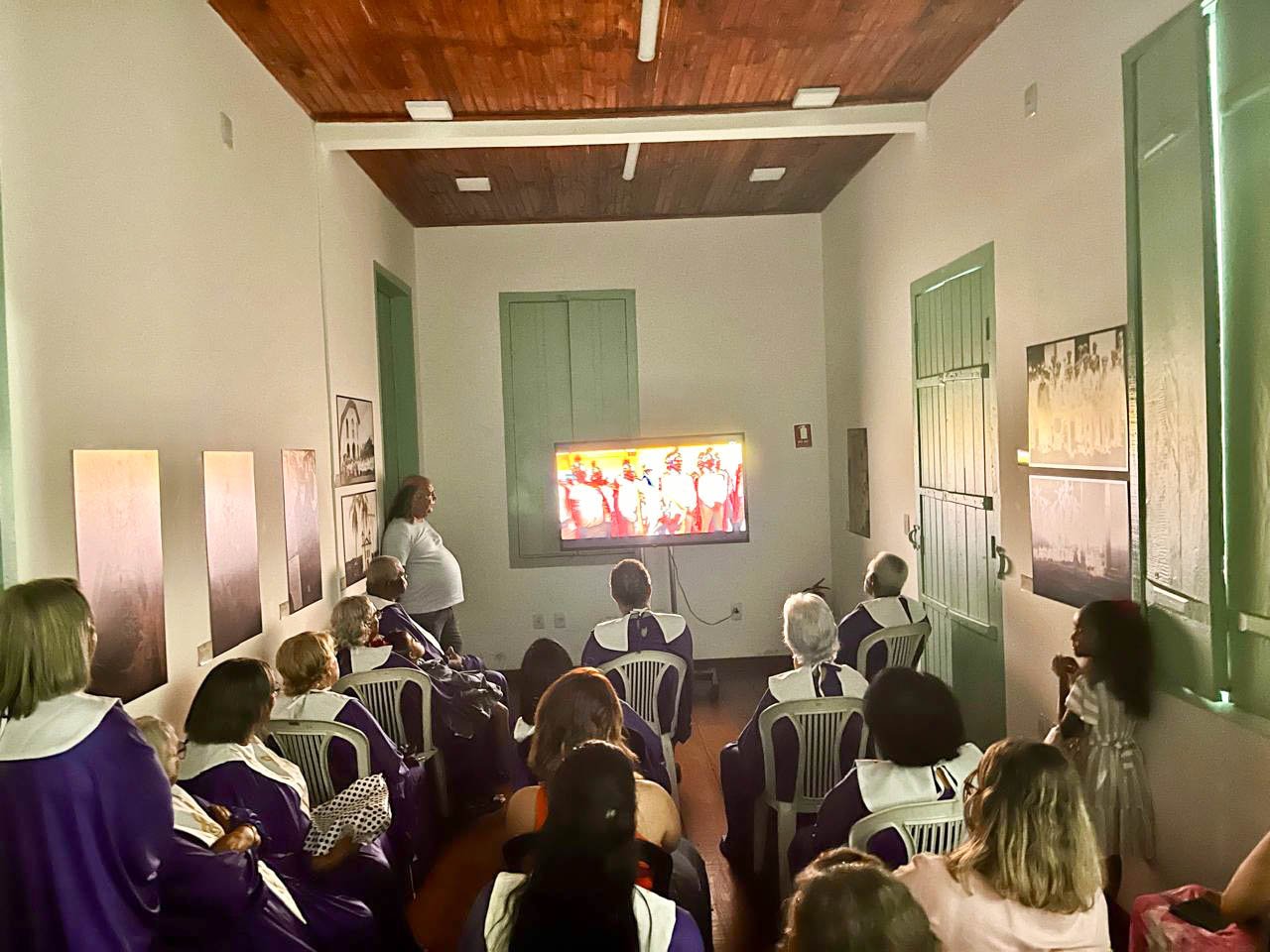 O evento começou com a exibição do documentário “Os Sete Irmãos do Reinado em São Gonçalo do Rio Abaixo”, produzido no Encontro Cultural, ocorrido este ano na cidade. O encontro reuniu representantes das sete irmandades congadeiras que percorreram as ruas centrais.