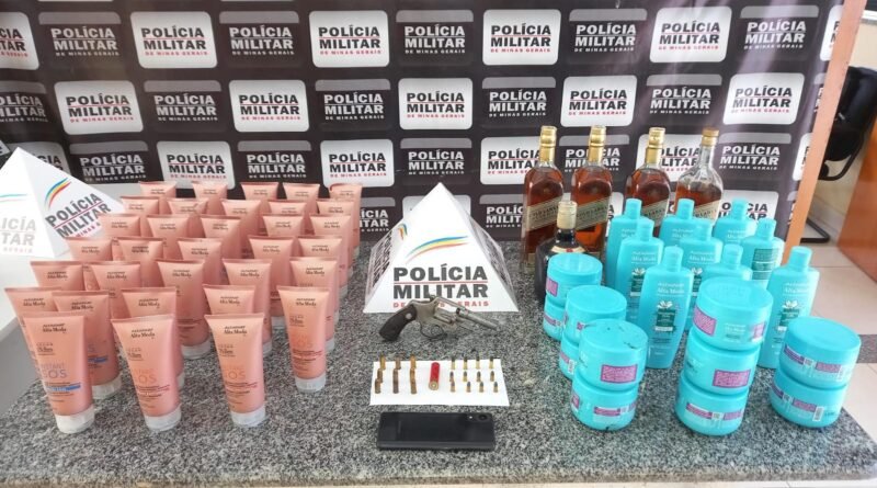 Diante dos fatos, os militares foram até a residência do suspeito, onde, com a autorização da proprietária, realizaram buscas. No local, foram encontrados os produtos roubados que foram apreendidos e uma arma de fogo calibre .32, além de diversas munições calibres .22 e .32.