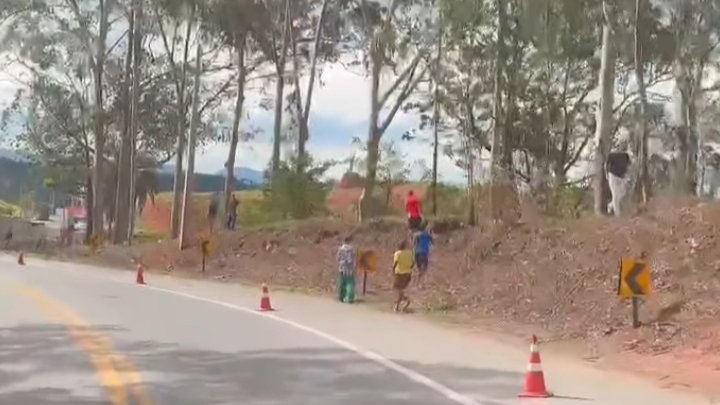 São Gonçalo do Rio Abaixo: “URUBUS” já estão saqueando a carga do caminhão tombado (ocorrência em andamento)