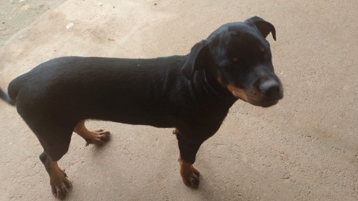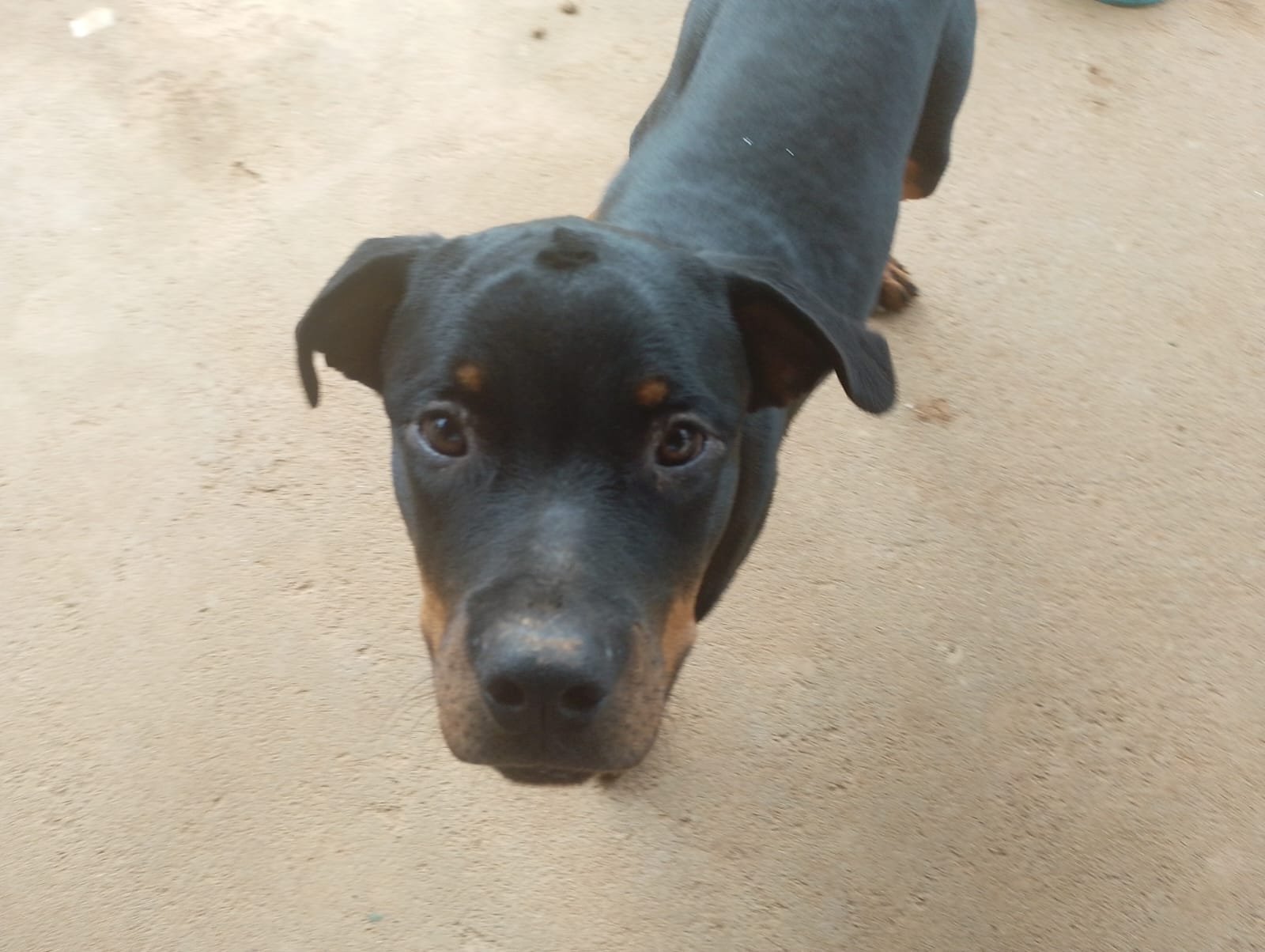 Robertão, morador do bairro Patrimônio, está doando um filhote de cachorro da raça Rottweiler, o pequeno animal tem apenas 6 meses de idade.