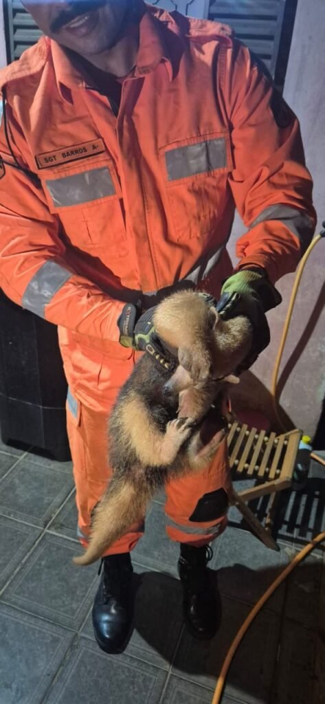 Na noite de sexta-feira (09/01), por volta das 23h, uma guarnição do Corpo de Bombeiros deslocou até o município de São Gotardo, para realizar a captura de um tamanduá-mirim localizado debaixo do tanque de lavar roupas da residência.