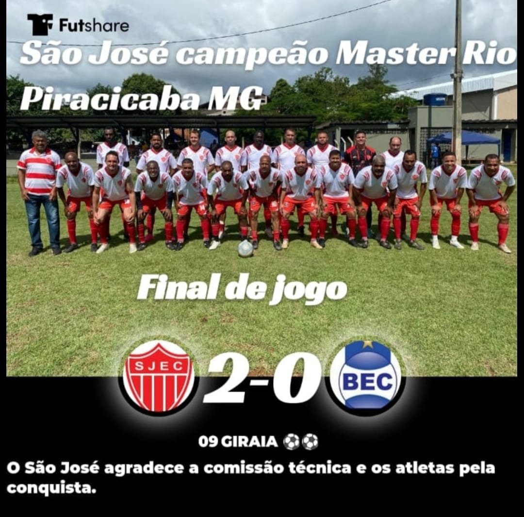 Na manhã deste domingo (14) o São José Esporte Clube de São Gonçalo do Rio Abaixo sob o comando do técnico Mauro foi Campeão Master na cidade de Rio Piracicaba.