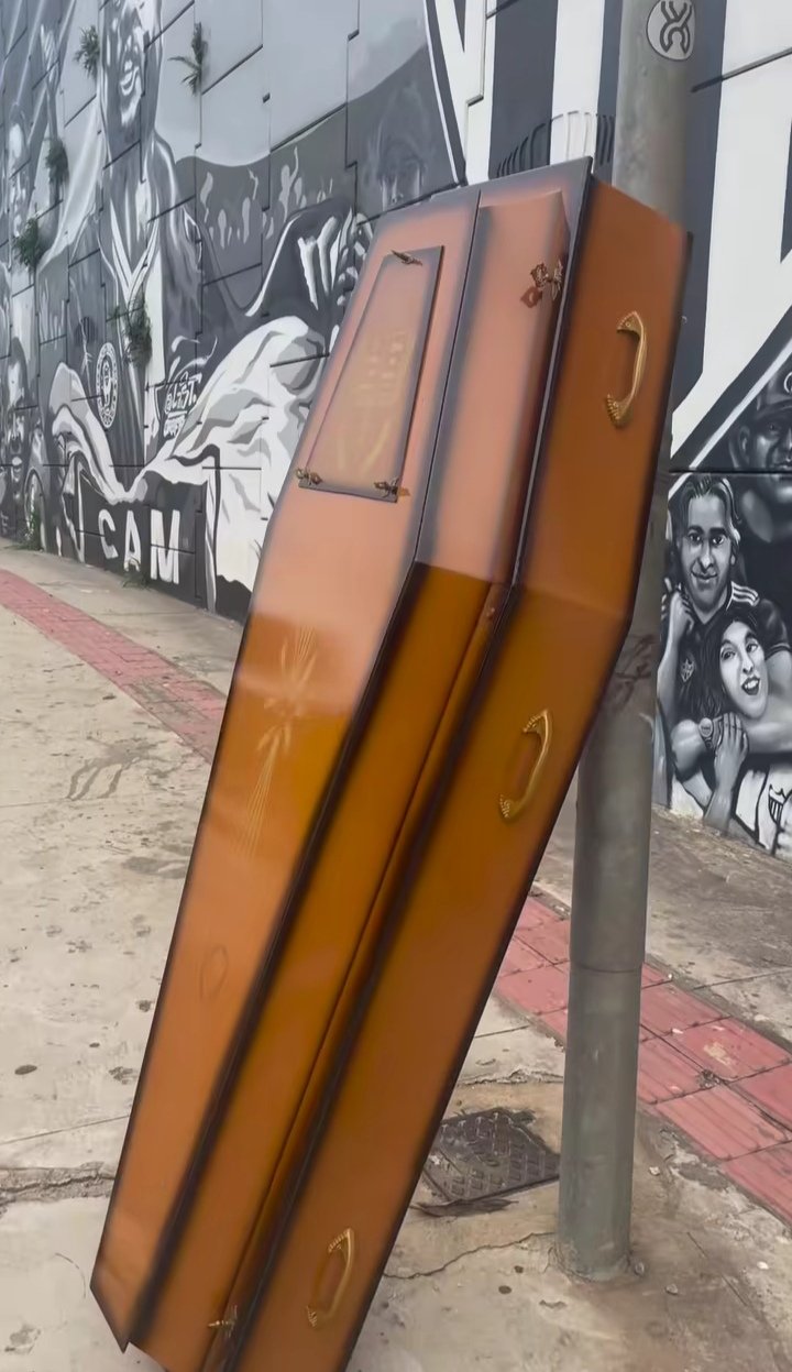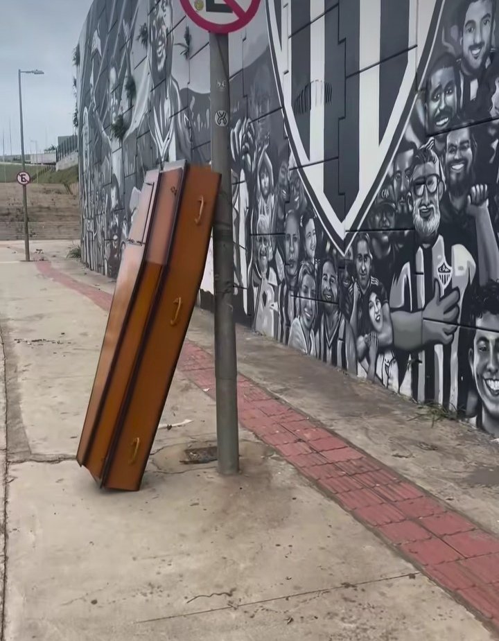 Macacos me mordam, uma cena horripilante foi registrada em frente a Arena MRV na Via Expressa, onde do nada apareceu um caixão mortuário, é isso mesmo um caixão na frente do estádio do Clube Atlético Mineiro.