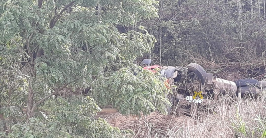 Tombamento de carreta que transportava ácido clorídrico em Sacramento-MG