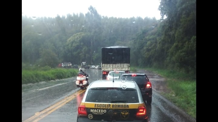 Devido a forte chuvas que cai na região, o recapeamento do trecho sendo realizado o trânsito está muito lento.
