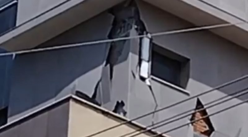 Segundo informações do solicitante, após um forte estrondo o prédio tremeu e parte da sua estrutura caiu.