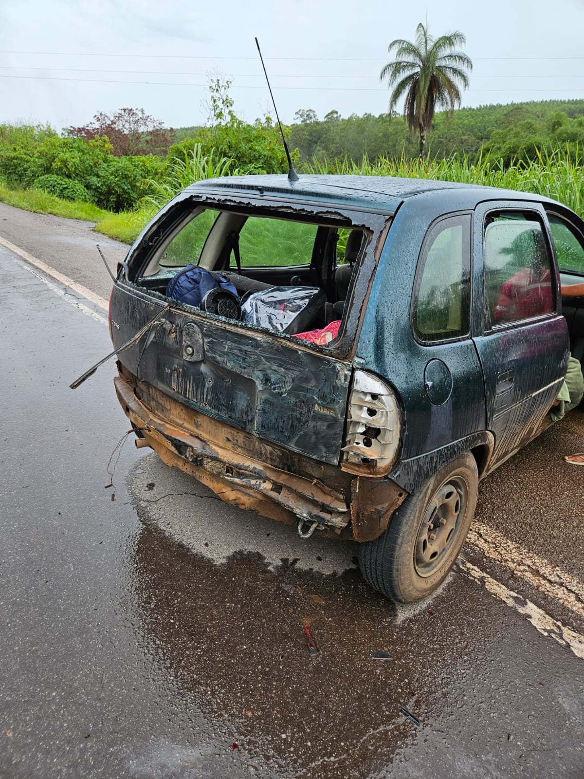 Terceiro acidente BR km 372 Café Nacional, Carreta X Corsa, sendo 1 vitima motorista da carreta atendido pelo SEVOR.