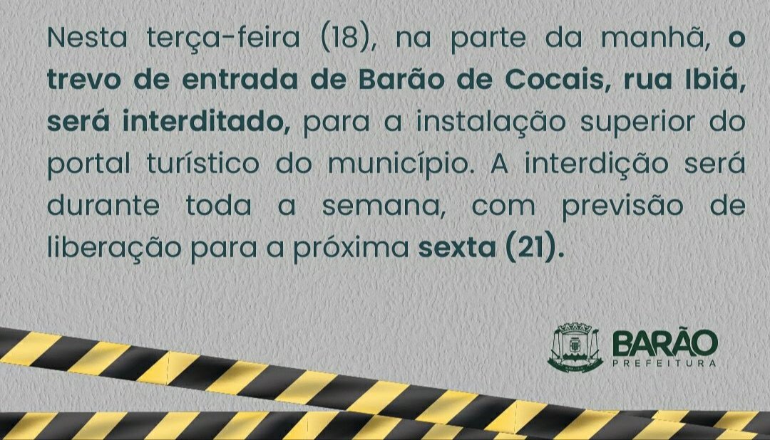 Política Trevo de Barão de Cocais MG será interditado amanhã 18/01 17 de janeiro de 2022 portaldomediopiracicaba@gmail.com Redação