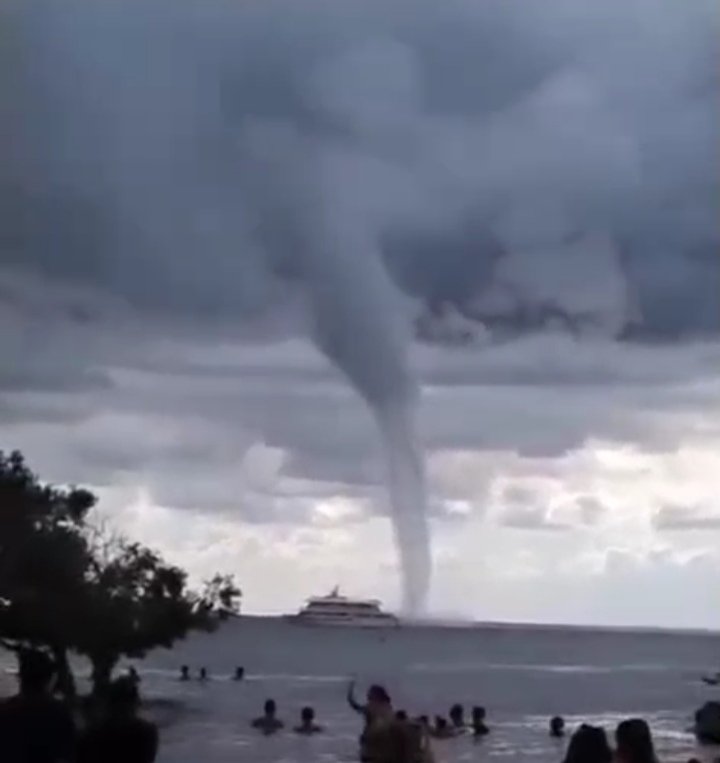 E uma destas cenas incríveis aconteceu no final da tarde deste domingo, uma tromba d’água e foi próximo da praia do Cajueiro.