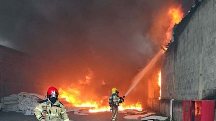 As chamas teriam iniciado no setor de produção de blocos de espuma e tomou todo galpão.
