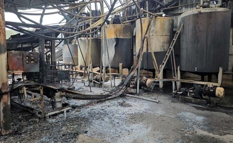 O galpão principal teve sua estrutura totalmente comprometida pelo incêndio.