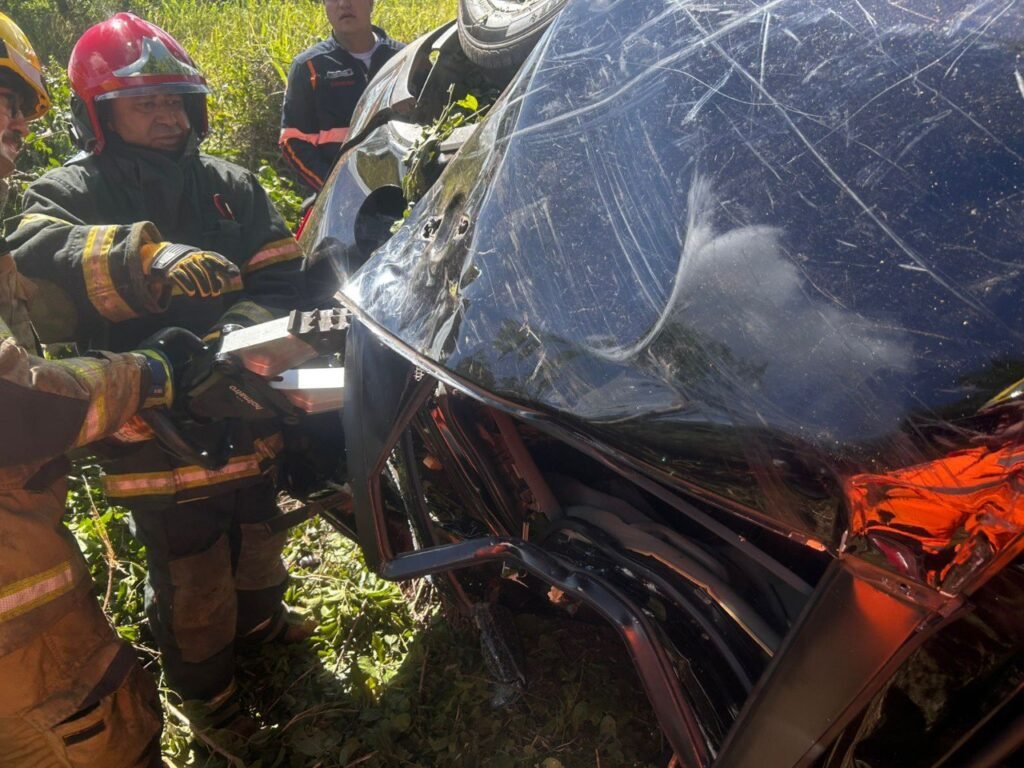 De imediato, duas guarnições foram empenhadas para o atendimento, sendo um Auto Salvamento Leve e um Auto Bomba Tanque Salvamento. Ao chegarem no local, os militares constataram que o condutor encontrava-se fora do veículo, consciente e deambulando. No interior do automóvel havia três vítimas, sendo uma mulher adulta em óbito e dois menores de idade presos às ferragens.