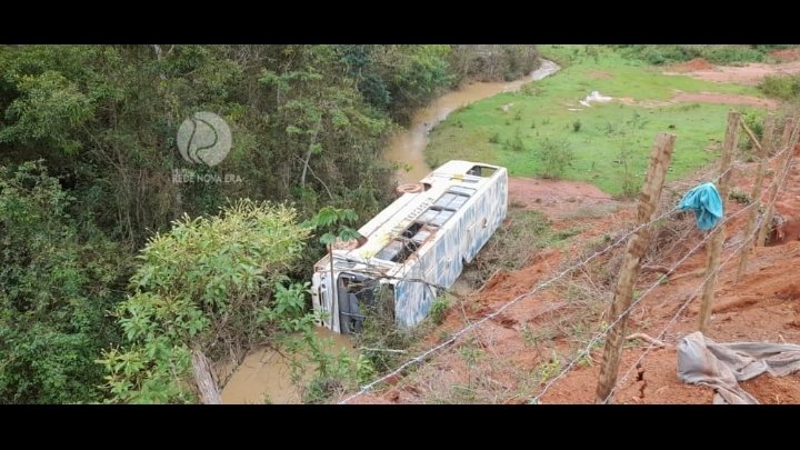 Um ônibus escolar da secretaria municipal de educação da prefeitura de Antônio Dias, despencou em uma ribanceira de aproximadamente 10 metros na manhã desta quarta-feira (16).