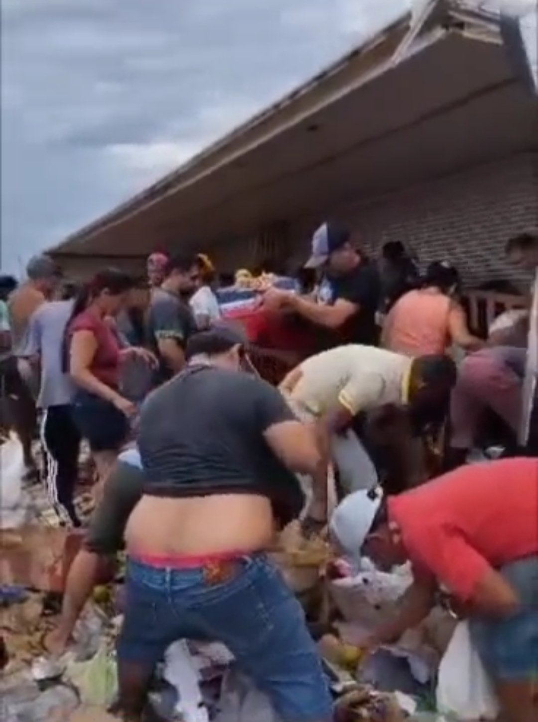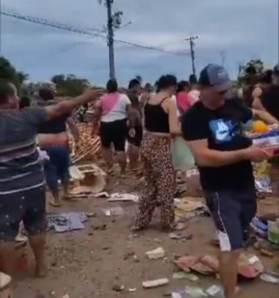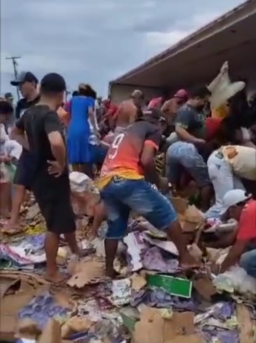 E os populares fazem a festa, alguns precisam realmente pois estão em situação de vulnerabilidade mas tem outras pessoas que não precisam e mesmo assim saquean a carga.