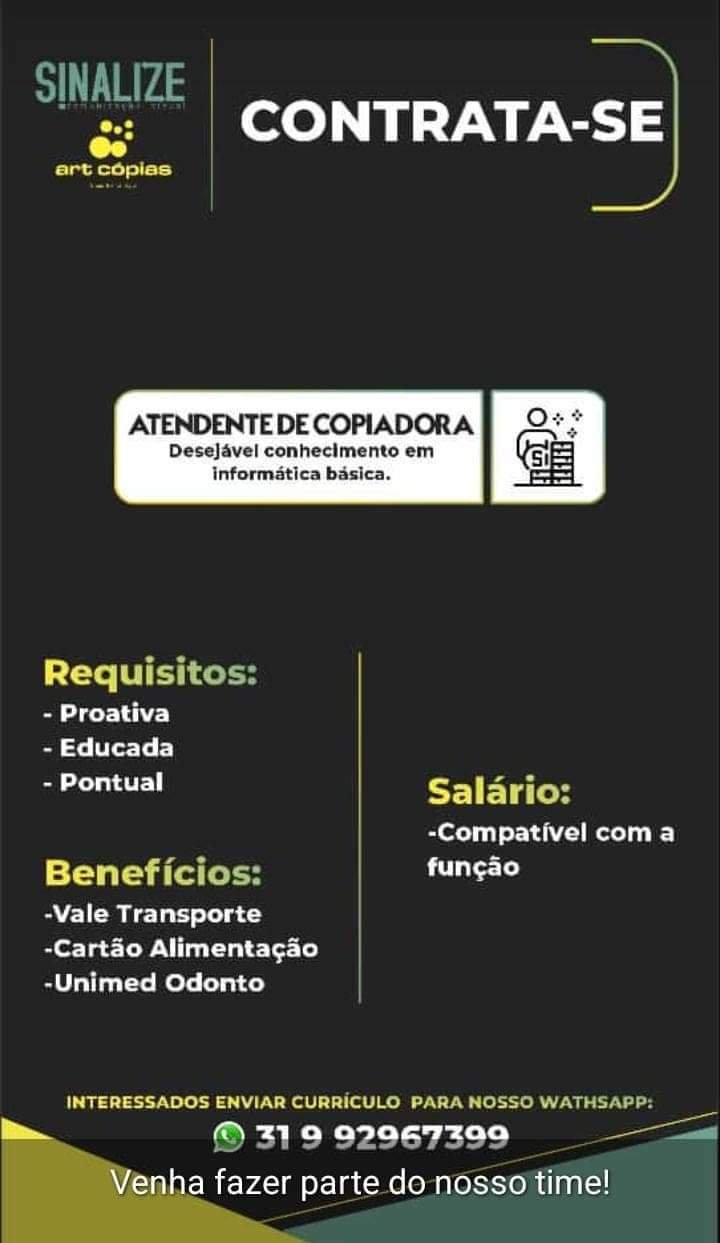Médio Piracicaba VAGAS DE EMPREGO EM JOÃO MONLEVADE PARA ESTA SEGUNDA-FEIRA 05 DE DEZEMBRO BOA SORTE AOS CANDIDATOS (#COMPARTILHE) 4 de dezembro de 2022 portaldomediopiracicaba@gmail.com Redação