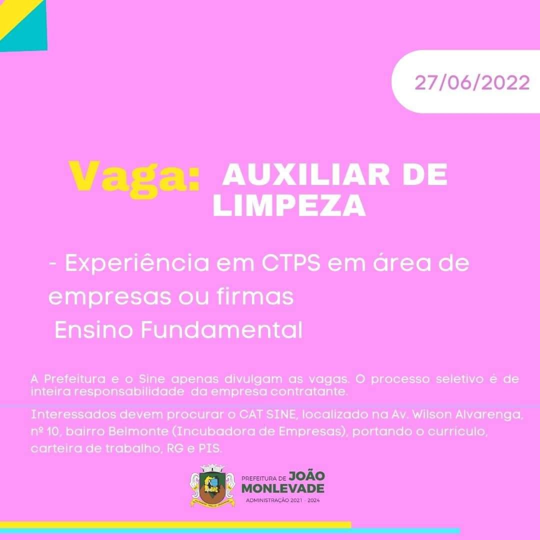 Vagas de emprego no SINE João Monlevade Boa sorte aos candidatos (as)