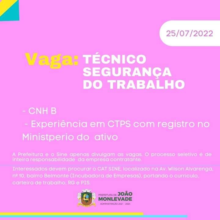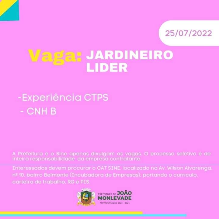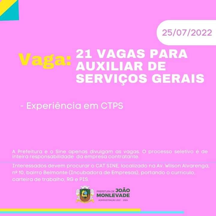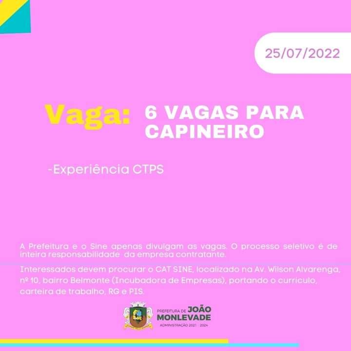 Médio Piracicaba Vagas de emprego no SINE João Monlevade MG Boa sorte aos candidatos 25 de julho de 2022 portaldomediopiracicaba@gmail.com Redação