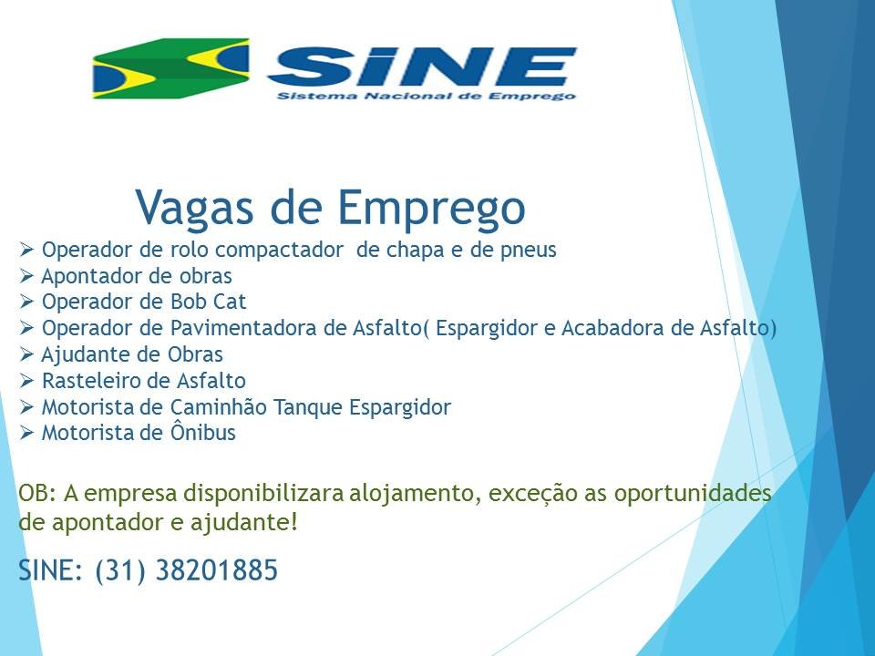 Médio Piracicaba Vagas de emprego no SINE São Gonçalo do Rio Abaixo MG Boa sorte aos candidatos 19 de julho de 2022 portaldomediopiracicaba@gmail.com Redação