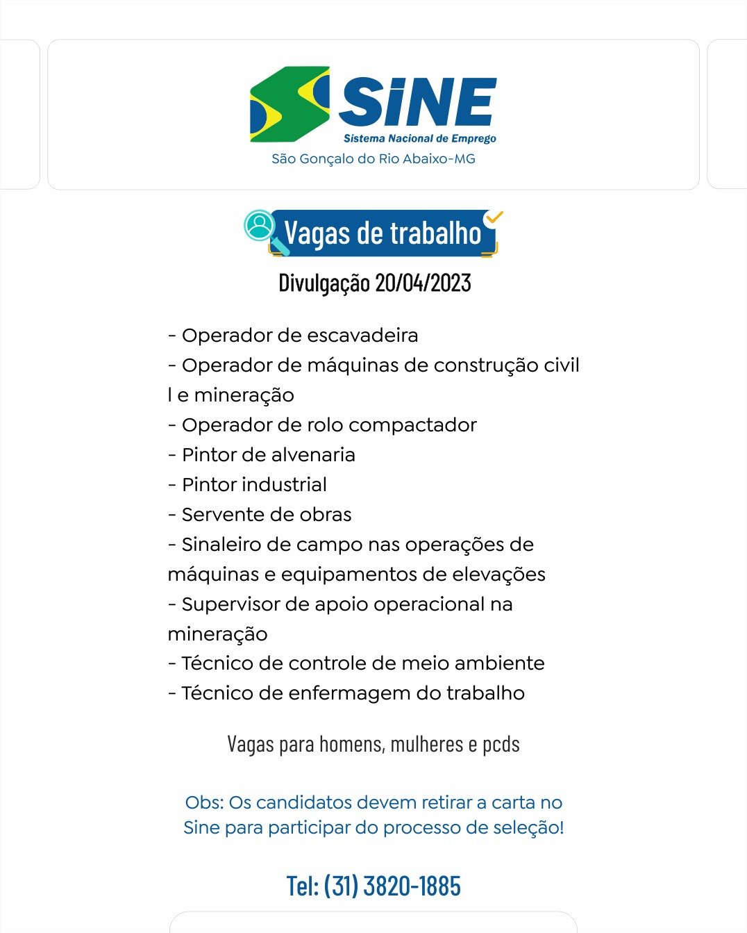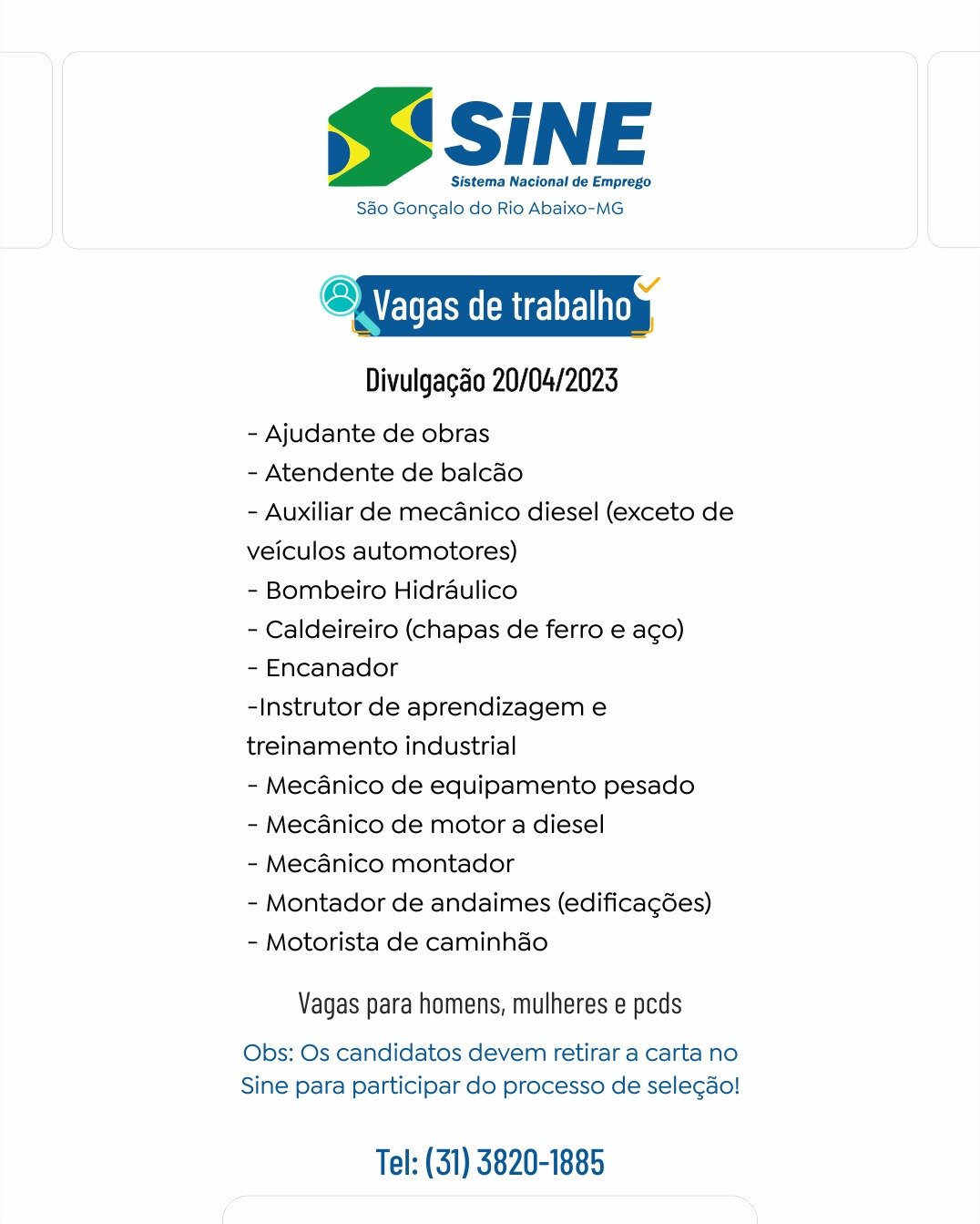 Médio Piracicaba VAGAS DE EMPREGO PARA 24/04 NO SINE SÃO GONÇALO #BOA SORTE AOS CANDIDATOS 20 de abril de 2023 portaldomediopiracicaba@gmail.com Redação