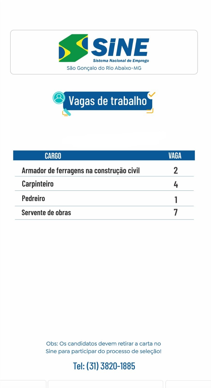 Médio Piracicaba Vagas de emprego para amanhã, quinta-feira 28 de dezembro no SINE em São Gonçalo do Rio Abaixo 27 de dezembro de 2023 portaldomediopiracicaba@gmail.com Redação