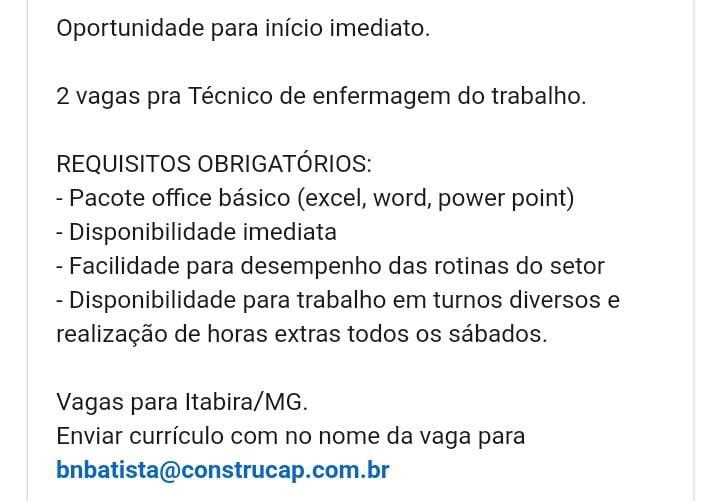 Médio Piracicaba Vagas de Emprego para Itabira MG Boa sorte aos candidatos 25 de fevereiro de 2022 portaldomediopiracicaba@gmail.com Redação